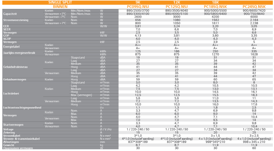 Let op: excl. koelleiding, electra, condensslang, ophangmateriaal