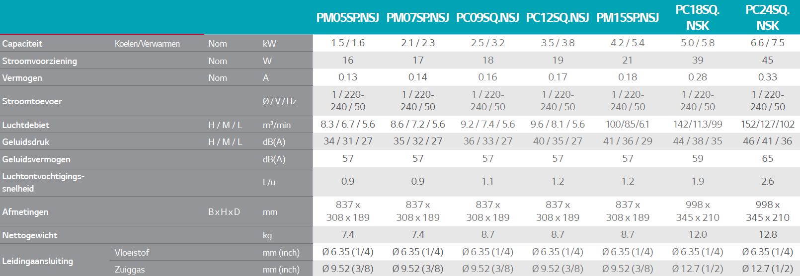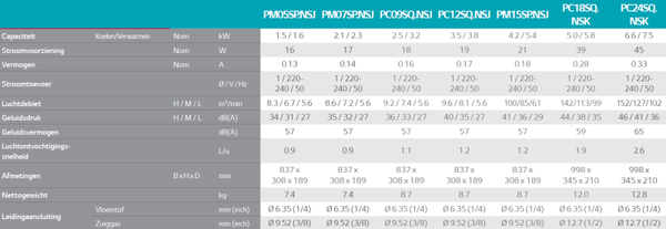 Let op: excl. koelleiding, electra, condensslang, ophangmateriaal